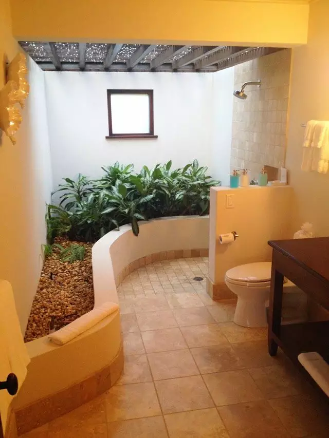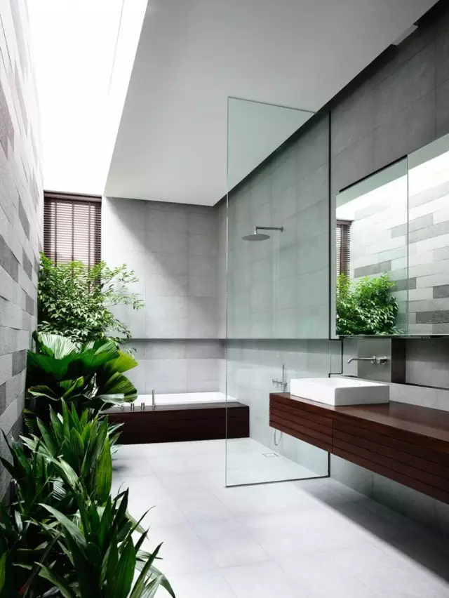 把卫生间变成花园首先你需要一个大大的卫生间再者,卫生间必须有一个大大的窗或者是天窗就这样,淋浴时置身绿色错把卫生间当成热带雨林闭着眼睛,闻着青草香